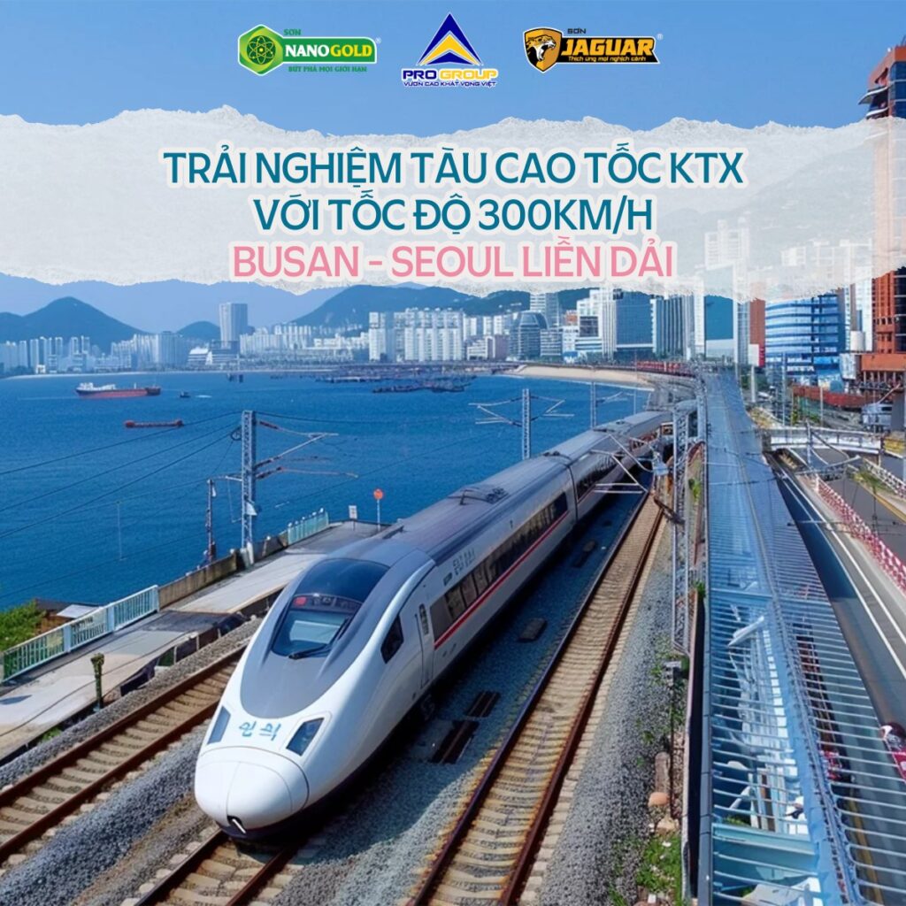 🚅 Trải nghiệm tàu KTX tốc độ cao lên tới hơn 300 km/h – Biểu tượng công nghệ của Hàn Quốc: Chuyến tàu kết nối 2 thành phố Busan & Seoul năng động, hiện đại, đậm đà bản sắc văn hoá xứ Hàn.