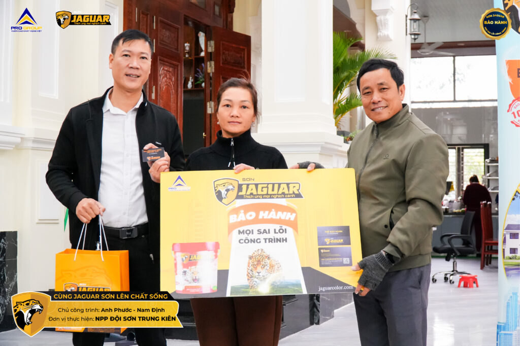 Chiến binh JAGUAR cùng NPP Đội sơn Trung Kiên vừa hoàn thành sứ mệnh đặc biệt tại những tổ ấm mới, tận tay trao tấm thẻ bảo hành mọi sai lỗi công trình đến từng gia chủ ở Nam Định.